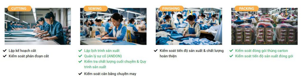 Quản lý nguyên phụ liệu, tiến độ đơn hàng và chi phí vận hành minh bạch hơn.